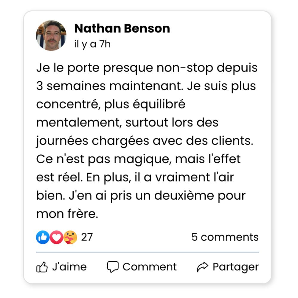 Porté chaque jour, il crée une connexion directe avec le champ énergétique de votre corps, soutenant naturellement le métabolisme, la testostérone et la concentration, sans inonder votre organisme de stimulants artificiels.
